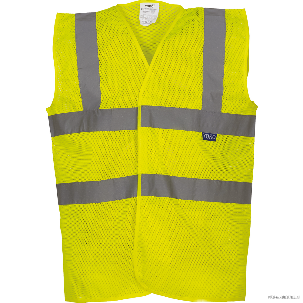 100% polyester. 100% gerecycled polyester. Gemaakt van petflessen. Gemaakt van ademende, licht gebreide gaas. 5 cm brede reflectieband rond het lichaam en over elke schouder. Velcro® sluiting vooraan. Conform aan de Amerikaanse Nationale Norm ANSI/ISEA 107-2004 en Europese EN ISO20471:2013 Klasse 2 : enkel Hi-Vis Orange en H-Vis Yellow.